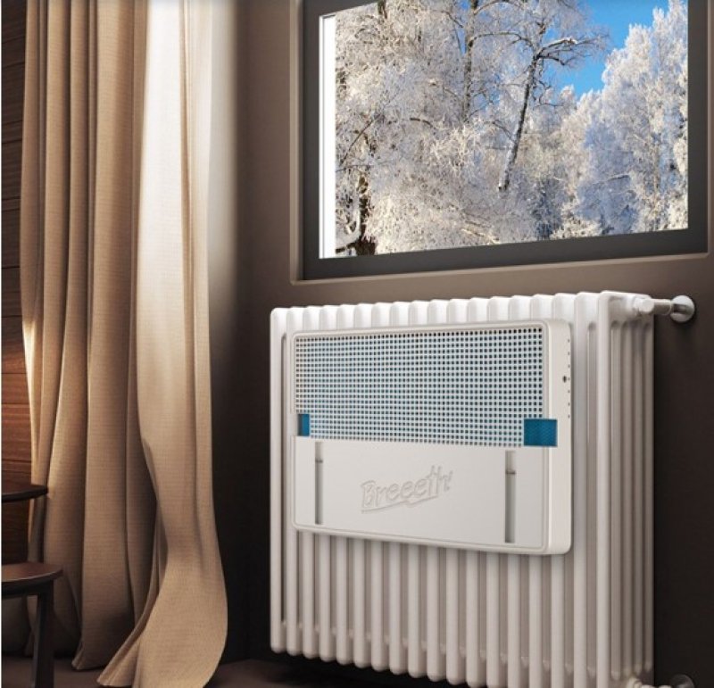 Увлажнитель воздуха на батарею Breeeth Natural Fun. Инновационной увлажнитель. С размещение на батарее (не разольете воду). С двойной системой испарения - от тепла батареи (горячее батарея - больше испарение) + испарение от обдува вентиляторами. Это работает и по отдельности. Сочетание дает реально большую производительность (до 800 гр/в час и до 50-52% влажности в помещении. Дышится очень легко). Работающий вентиляторный блок на первой скорости ночью не слышен и спать не мешает. Некоторым это важно. Есть пульт ДУ на 3 скорости. На внешней части видны поплавковые индикаторы остатка уровня воды. Вода доливается лейкой через окна, которые видны на фасаде. Реально все работает и реально удобно пользоваться. И дышится легко.